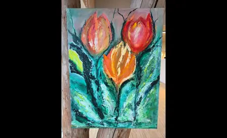 Oliemaleri "Flower Power", højde 80 cm, bredde 60 cm.